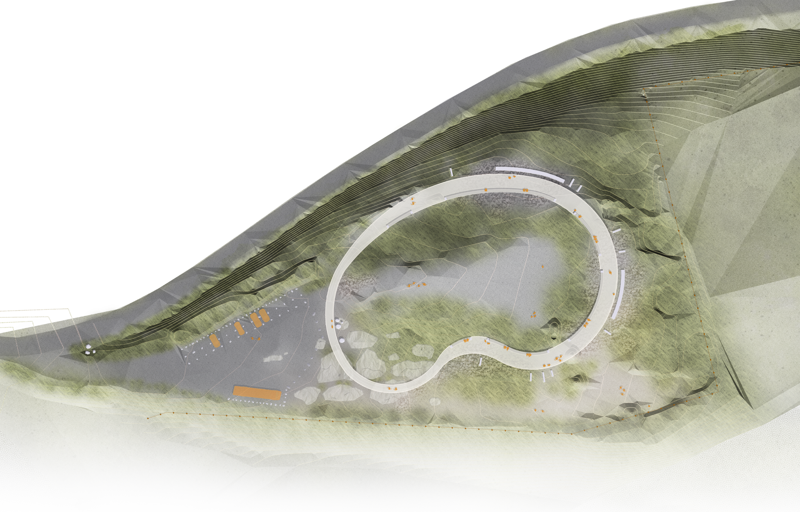 Le belvédère se conçoit comme un parcours plutôt qu’un point fixe. Un cheminement léger, accessible à tous, se déploie à travers le site tel un ruban posé sur le paysage. Il accompagne le visiteur dans une découverte progressive, multipliant les points de vue et les perceptions.